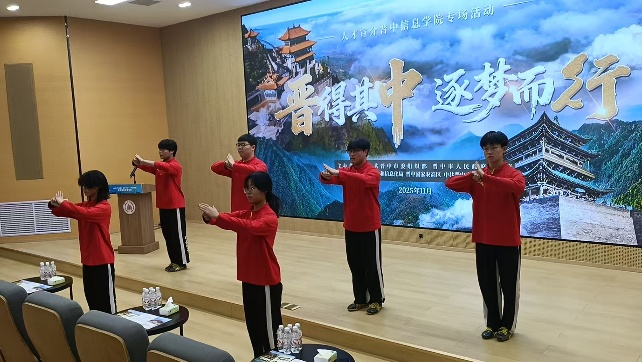 为深入贯彻落实立德树人根本任务,弘扬中华优秀传统文化,展现我校学子的综合素质与精神风貌,11月13日,我校武术队受邀参加在ST报告厅隆重举行的““晋得其中,逐梦而行”人才宣介活动,并在开幕式上进行了精彩的武术表演。